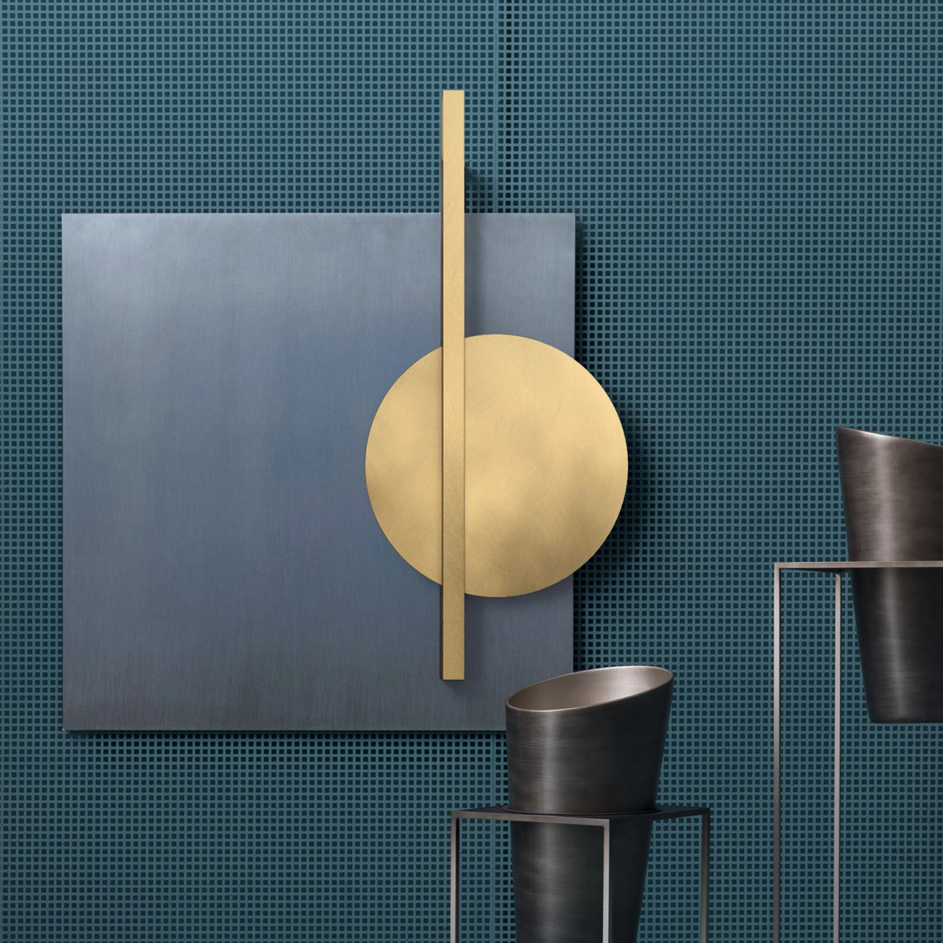 La linea 'Geometria Colors' di Adriani e Rossi si distingue per le sue sculture da parete tridimensionali, meticolosamente realizzate in MDF con una finitura laccata metallica e dettagli in metallo. Queste creazioni artistiche sfruttano la sovrapposizione di forme geometriche per generare un effetto visivo di sospensione e grande impatto scenografico, esplorando con maestria la relazione tra luce, ombra e profondità. Ogni elemento è rifinito con striature metalliche applicate a mano, conferendo un design intrinsecamente contemporaneo e una texture materica di elevata qualità. L'accurata selezione di materiali di pregio e l'estetica raffinata garantiscono una soluzione d'arredo di lunga durata e impatto visivo.