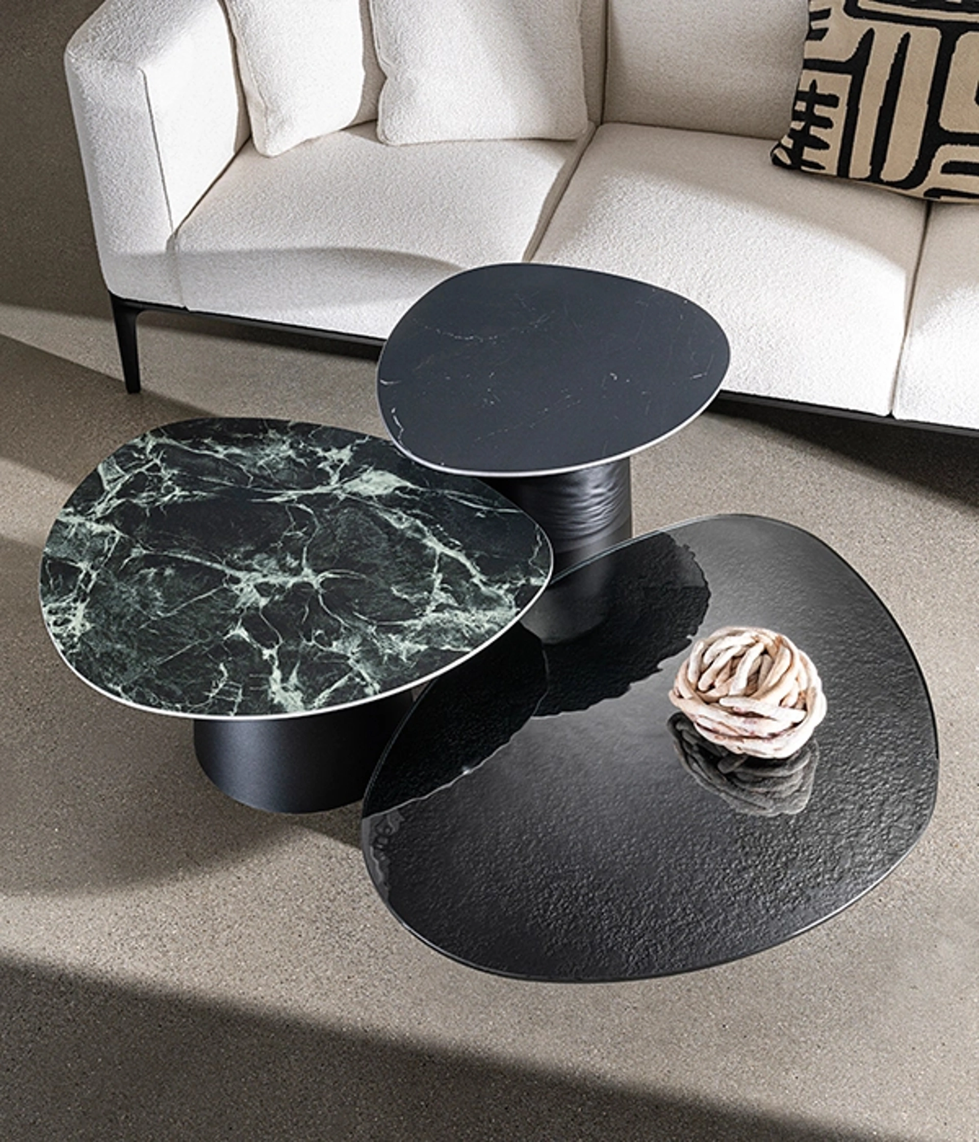 Il tavolino Totem Drop, frutto della creatività di Studio Sovet, si configura come un componente d'arredo dal forte impatto scultoreo, capace di infondere un senso di fluidità e distintività negli spazi abitativi moderni. La sua peculiare superficie superiore a goccia conferisce una dinamica visiva organica, ottimamente controbilanciata da una base metallica di alta ingegneria che assicura robustezza strutturale e un marcato contrasto estetico. La versatilità è garantita dalla disponibilità di finiture in vetro, legno, ceramica e l'innovativo vetro Materia, che arricchiscono il prodotto di spessore tattile e una sofisticazione materica intrinseca. Il design caratterizzato da linee sinuose e continue lo rende una soluzione privilegiata per contesti architettonici contemporanei, minimalisti o votati all'espressione creativa. La progettazione di questo elemento d'arredo è orientata a garantire una performance estetica e funzionale prolungata nel tempo, ottimizzando l'esperienza d'uso.