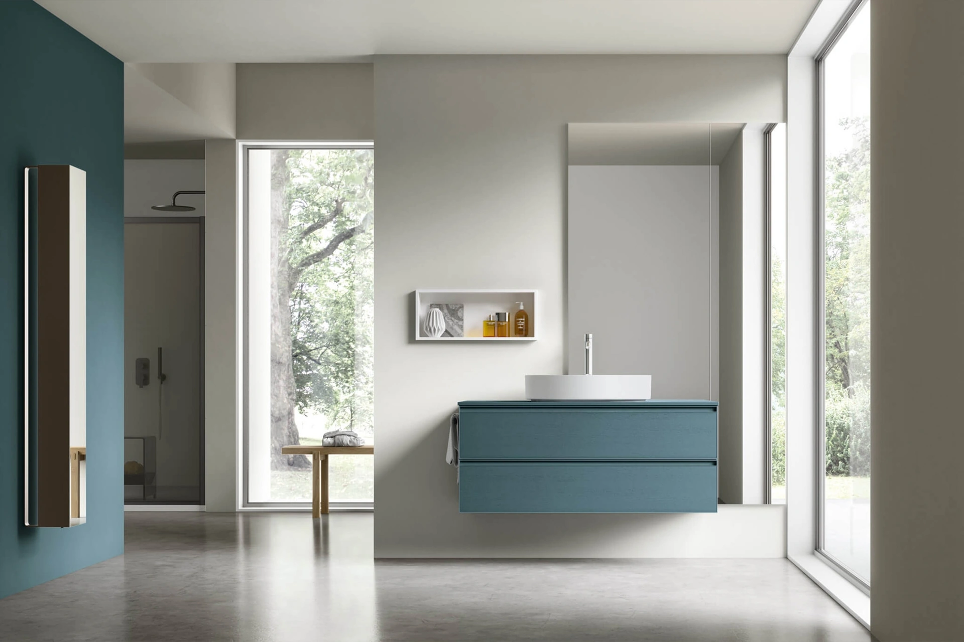 | Materiale: | Metallo (profilo a gola), varie finiture per ante (laccati, legno, gres, vetro), Grigio Antracite (per Composizione 29). |