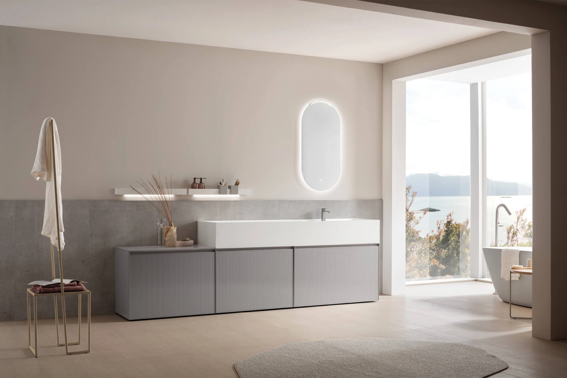 | Materiale: | Legno Rovere, Gres, Metallo, Laccato (Sabbiato, Vetro millerighe, Vetro plissé), Eucalipto, Vetro, Finitura Velvet |
