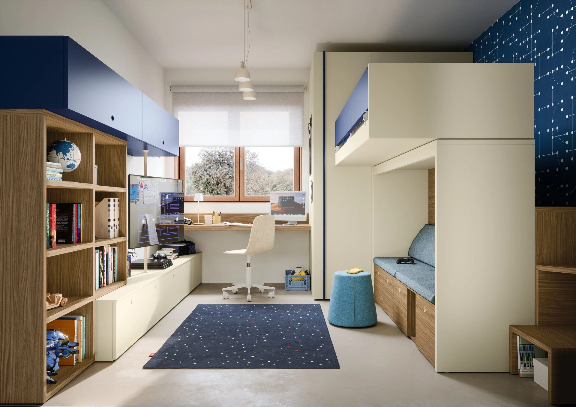 Il letto a castello scorrevole Skid di Nidi rappresenta una soluzione eccezionale per ottimizzare lo spazio in ogni cameretta, combinando design innovativo e funzionalità avanzate. Questo sistema versatile può essere integrato con un secondo letto o personalizzato con moduli aggiuntivi come armadi, scrivanie e librerie, adattandosi perfettamente alle tue esigenze. La sua struttura scorrevole, che poggia elegantemente sui volumi sottostanti, facilita l'accesso alla scala modulare, dotata di pratici scomparti o cassetti. Per la massima sicurezza, sono disponibili protezioni in diverse configurazioni, da pannelli a soluzioni imbottite o in metallo con tasche. Offriamo un servizio di progettazione e consegna professionale, attivo in diverse località tra cui Cantù, Saronno e Monza, garantendo un'installazione impeccabile. Scegliendo Nidi Skid, investi in un prodotto di alta qualità, supportato dalla nostra completa assistenza post-vendita e garanzia estesa, per la tua tranquillità.