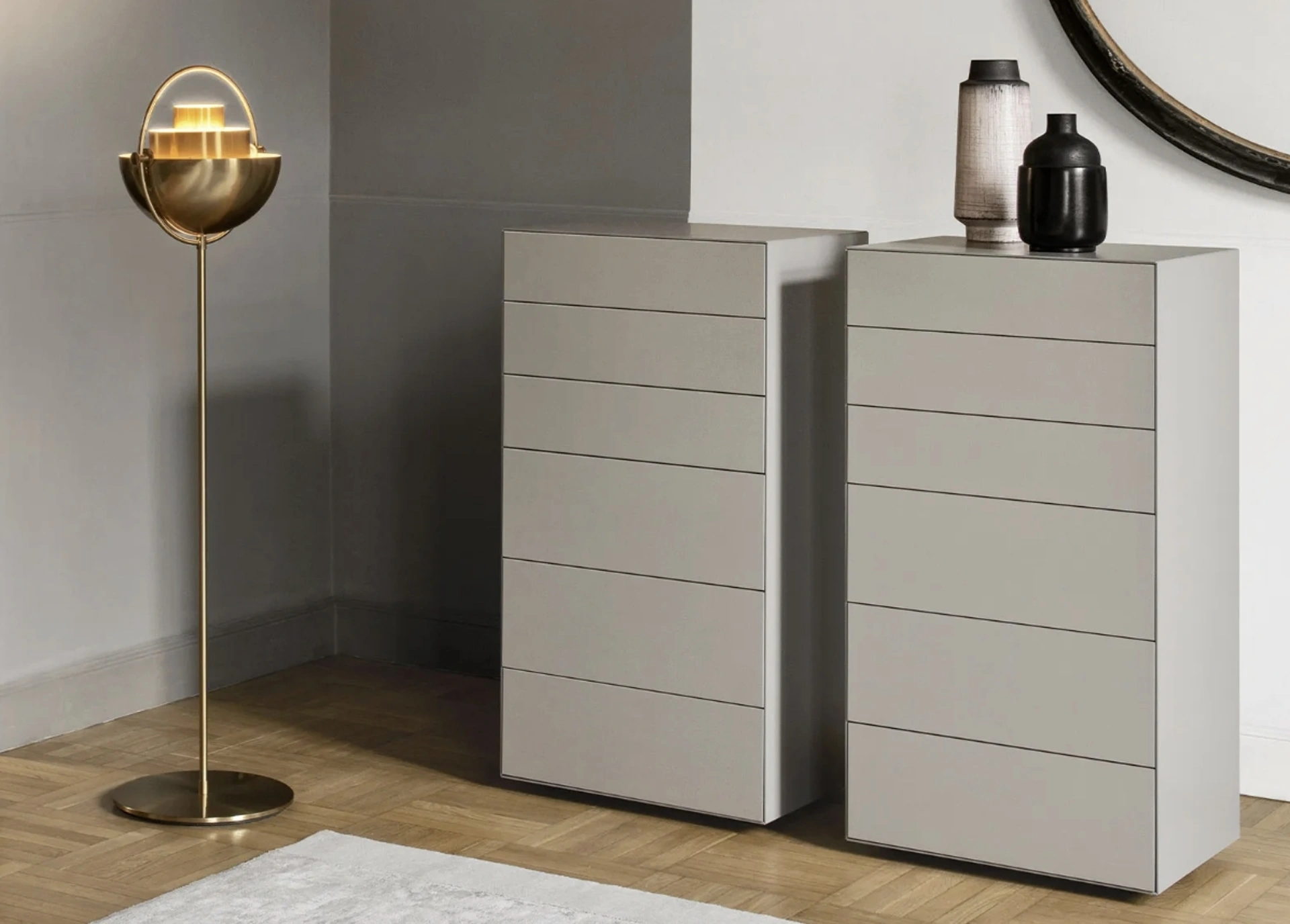 La serie Domino Mono di Sangiacomo propone una collezione versatile di elementi per la zona notte, quali comodini e cassettiere, disponibili in configurazioni verticali o orizzontali. Il design contemporaneo si distingue per le sue geometrie precise e i volumi solidi ed essenziali, impreziositi da giunzioni angolari a 45 gradi. La personalizzazione è garantita da un'ampia gamma di finiture: esterni impiallacciati abbinati a interni laccati, configurazioni interamente laccate, o esterni impiallacciati con cassetti laccati. I materiali includono rovere tinto impiallacciato in varie tonalità (Avana, Argilla, Grigio, Cuba, Carbone), elementi metallici (Bronzo, Ottone, Rame) e laccati opachi in diverse colorazioni (Amarena, Artico, Grigio Corda, Ardesia, Silice, Ferro). Alcune versioni a sospensione sono dotate di illuminazione a LED integrata, elevando la funzionalità e l'estetica. L'accurata selezione dei materiali assicura un'elevata durabilità e un'estetica raffinata, consentendo di esplorare finiture che si integrano armoniosamente in ogni ambiente.