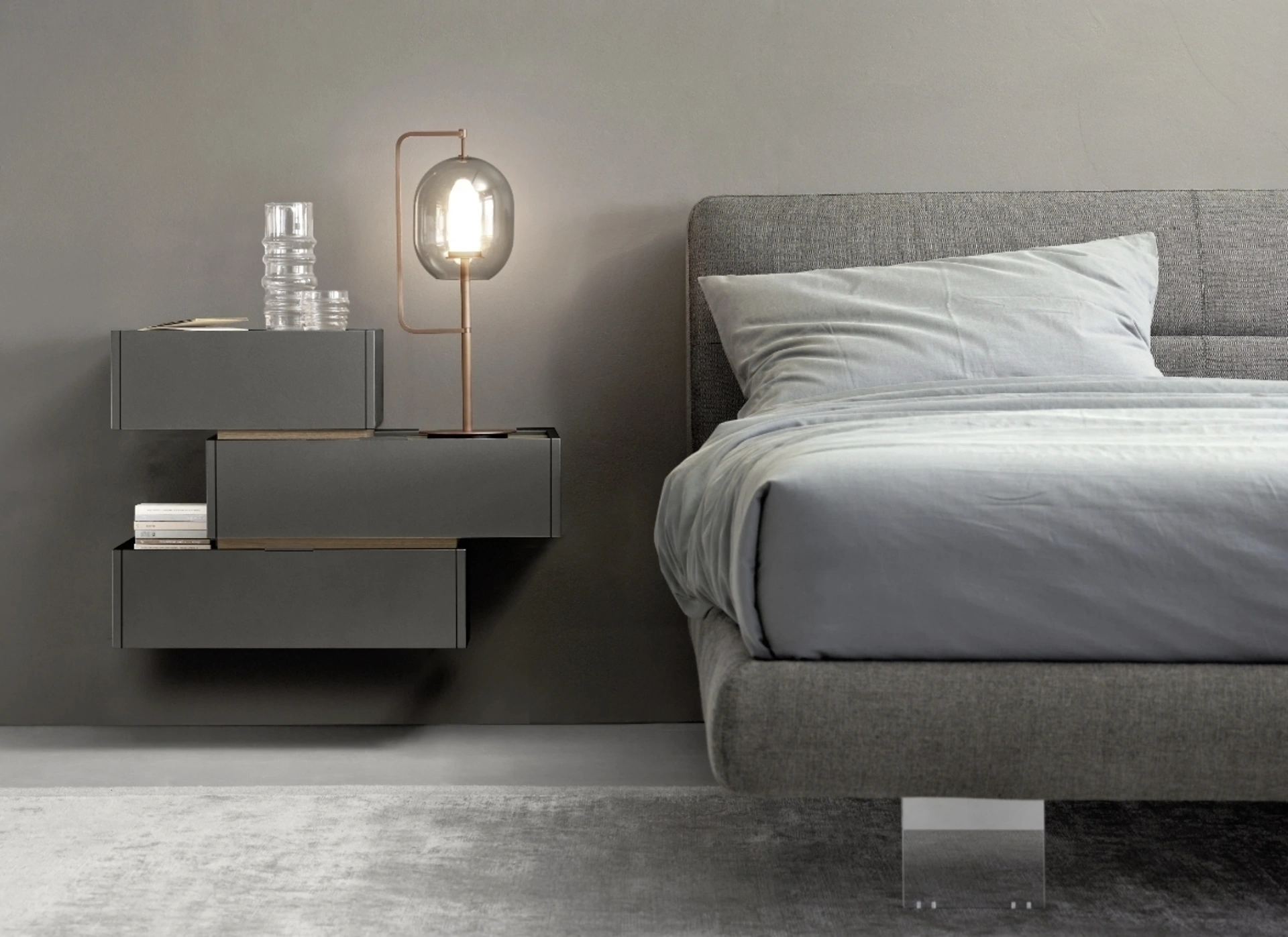 Questo sistema di arredi per la zona notte, firmato Sangiacomo, presenta un'estetica moderna e minimale, con volumi puliti, che possono essere compatti o disposti in modo dinamico. Perfetti per l'ambiente notturno, questi mobili includono comodini, comò e cassettiere verticali sfoggiano finiture con piani e lati allineati ai cassetti offerti in diverse texture materiche e laccature. Le facciate sono caratterizzate da un'elegante linea orizzontale che definisce le maniglie disponibili in armonia cromatica o in contrasto. Il design modulare consente di dar vita a configurazioni su misura ideali anche per posizionamenti centrali nella stanza, data la cura dei dettagli su ogni superficie. Ad esempio, è possibile optare per un modulo con due cassetti ad apertura totale e meccanismo di chiusura ammortizzata. L'investimento in un sistema Filo Componibile garantisce durabilità strutturale e coerenza stilistica, rispondendo alle esigenze di un arredo funzionale e di lunga durata.