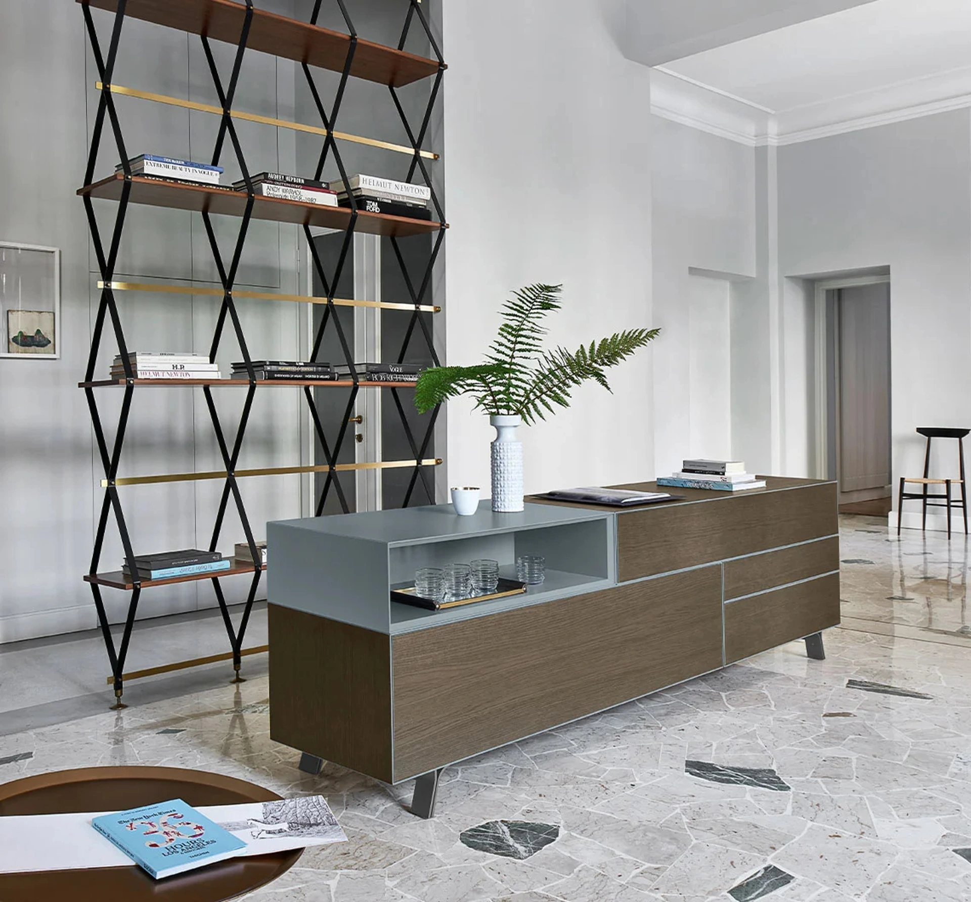 La madia Domino In di Sangiacomo si distingue per la sua eccezionale modularità e l'ingegneria del design. Proposta nelle varianti IN.2 e IN.3, questa collezione consente configurazioni dinamiche tramite la sovrapposizione di moduli, offrendo flessibilità compositiva. L'ampia selezione di altezze e finiture cromatiche permette una personalizzazione approfondita. Il design, caratterizzato da linee essenziali e contemporanee, si adatta con armonia a contesti sia moderni che classici, conferendo un'eleganza intrinseca. La funzionalità si estende alla possibilità di integrare vani dedicati con mensole in vetro a profondità ridotta, ottimizzati per l'organizzazione di bicchieri e bottiglie, trasformando la madia in un raffinato elemento bar. Questa soluzione rappresenta un'eccellente fusione di estetica e praticità, progettata per soddisfare le esigenze di arredo contemporaneo.