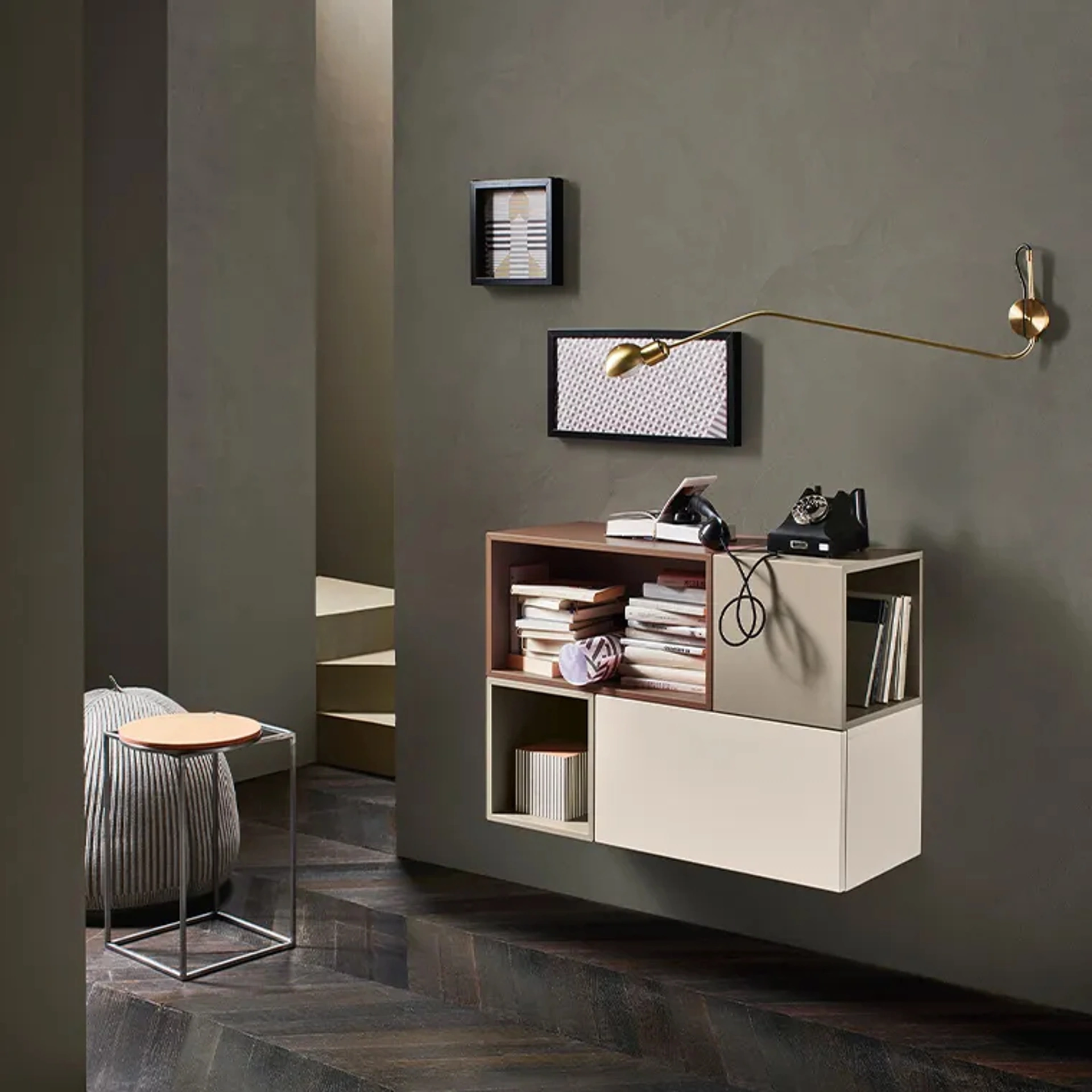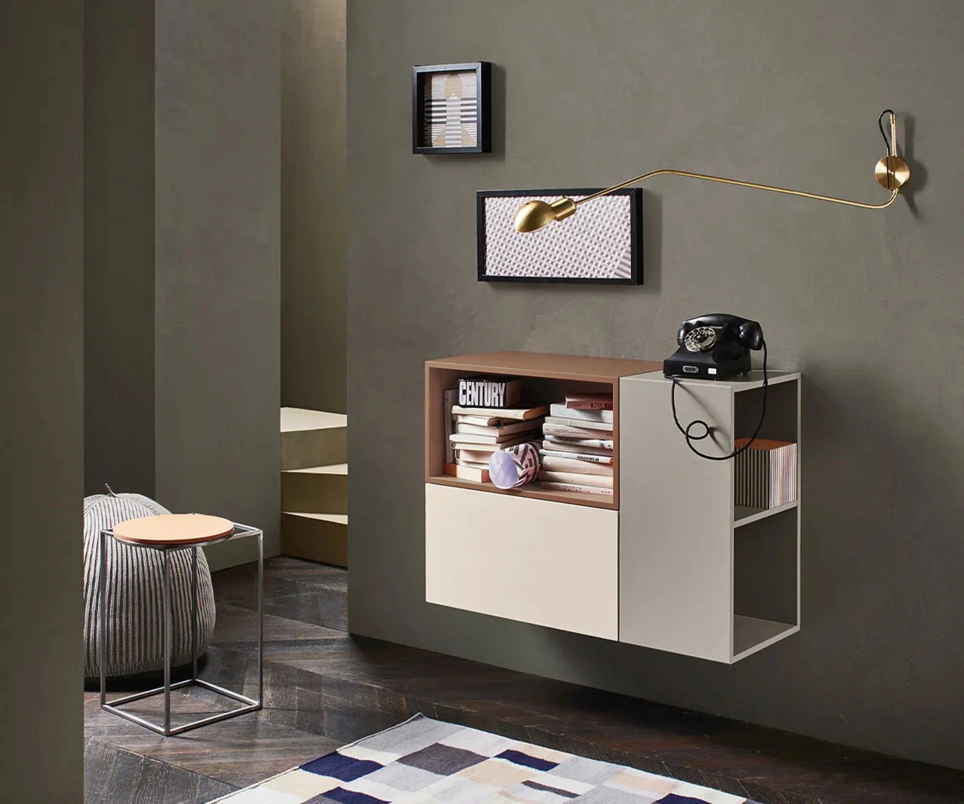 | Materiale: | Vetro lucido Juta, Laccato opaco Brown, Laccato opaco Bianco 10, Laccato opaco Ferro, Laccato opaco Ardesia, Rovere Carbone, Metallo Brown (per la base) |
