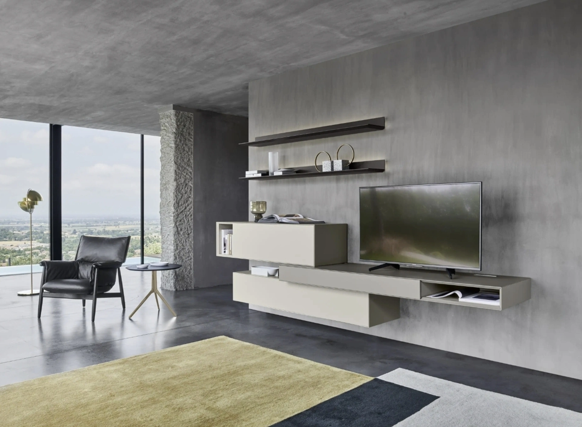 La parete attrezzata Domino 04 di Sangiacomo include moduli specifici per la TV?