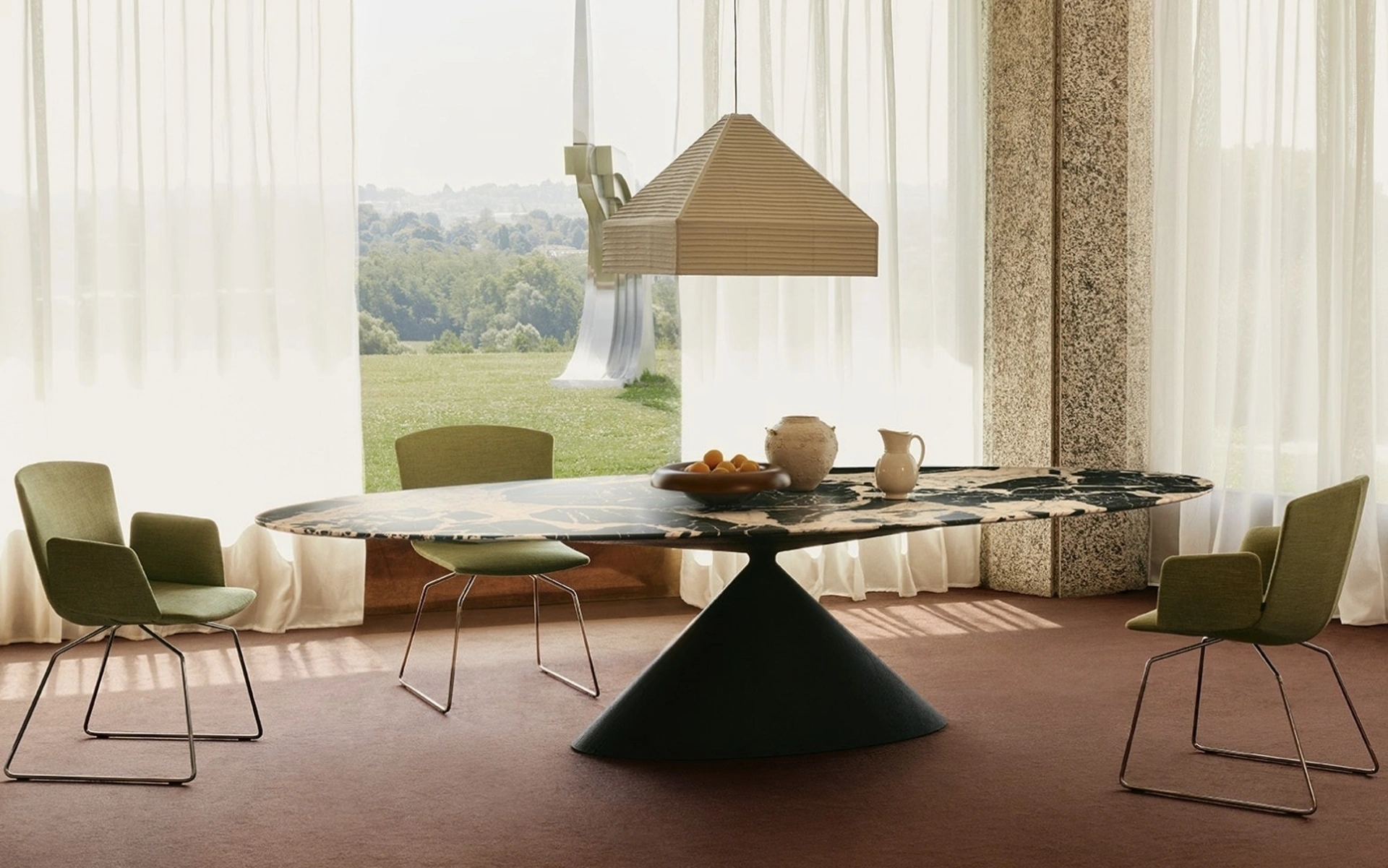 Se vuoi un tavolo da pranzo di elevata qualità, contattaci e ricevi info e preventivi sul modello mostrato in foto. Un modello come quello nell'immagine, in abbinamento alle giuste sedie, saprà valorizzare lo stile delle stanze di casa dedicate per eccellenza alla socializzazione. Tavolo Maxy Clay marmo di Desalto: realizzato in materiali pregiati è connotato dalle forme decise del top e da un basamento elegante e raffinato. Ideali per dare vita a degli abbinamenti unici con sedie e complementi design, i Tavoli fissi della firma sono soluzioni tra le più belle in commercio, ideali per il soggiorno e la zona cucina.