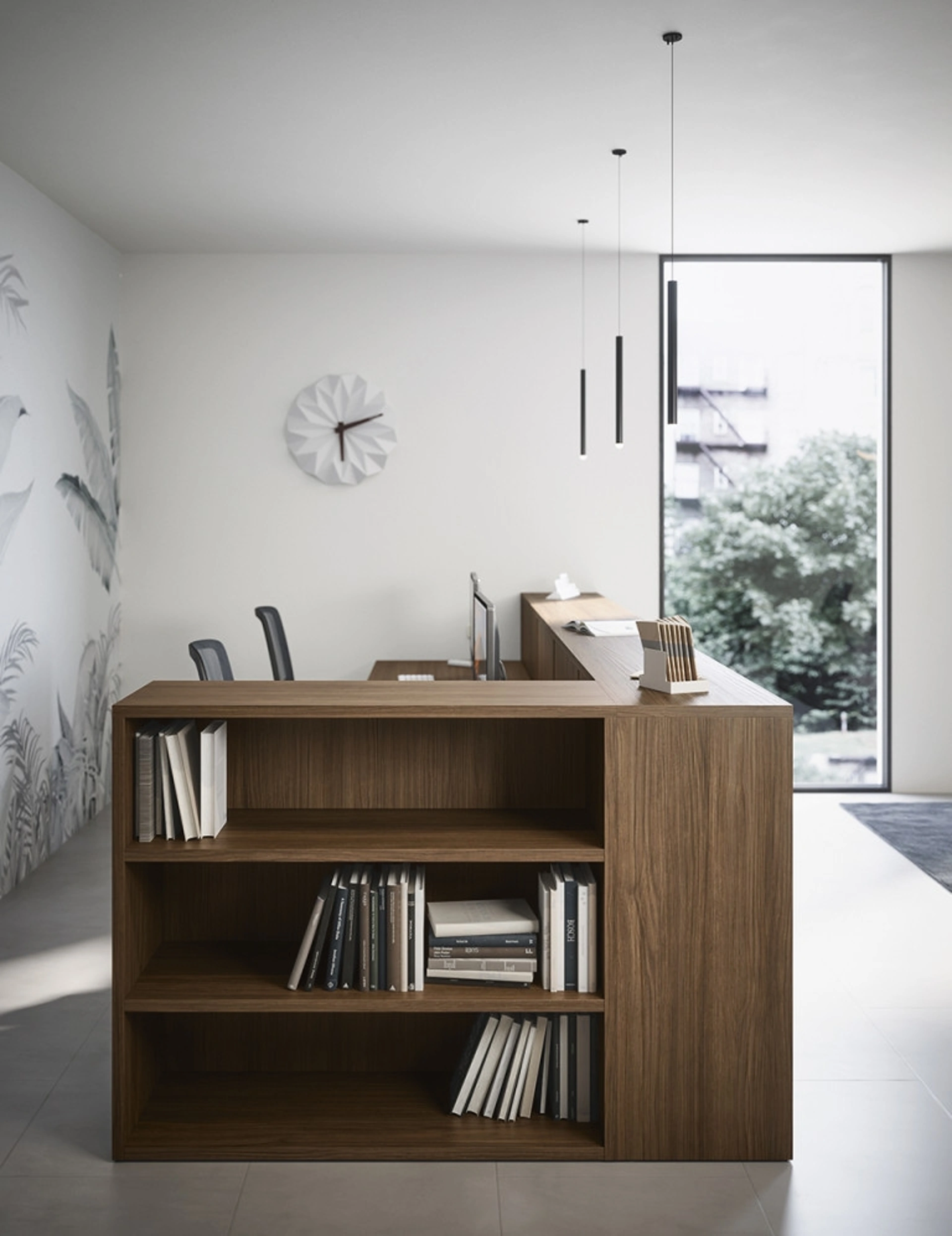 Cinquanta3 propone mobili di ottima fattura, sempre in grado di accontentare svariate richieste per quanto concerne sia l'estetica che la funzionalità. Da noi potrai vedere dal vivo tutte le più originali composizioni di Arredo Ufficio in melaminico disponibili sul mercato, sempre di ottima fattura. Bancone Reception 14B di Cinquanta3: è appartenente alla scelta quasi infinita di mobili per gli ambienti di lavoro del brand, leader nel mondo dell’Arredo Ufficio. Progetta il tuo spazio lavorativo con soluzioni di banconi reception in melaminico del brand: la vasta offerta di arredamenti per il tuo ufficio ti sta aspettando in negozio.